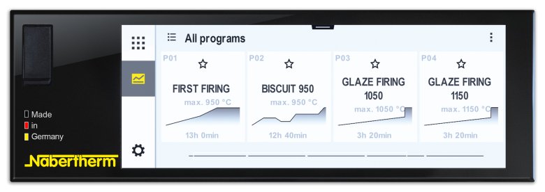 为了完善整个软件包并从各处查看工艺信息,我们开发了相关的“MyNabertherm”App。该控制器包含新的“MyNabertherm” App,可免费从IOS 和 ANDROID系统下载(中国版正在评估中)。使用该应用程序,可以通过移动设备方便地在线监控烧结等工艺。可以跟踪工艺进度,推送通知将提醒工艺中的事件。万一发生故障,该应用程序会通过推送通知直接通知您。还可以使用该应用程序直接联系纳博热售后服务,因为良好的服务是我们的质量特征之一。